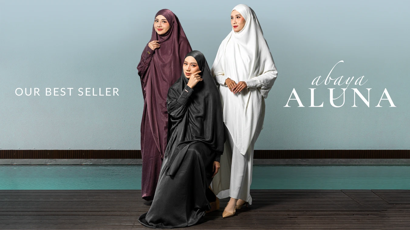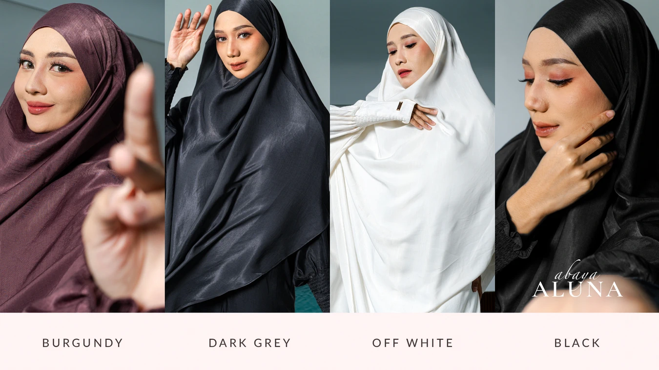 Saqqina Hijab - Aluna Abaya Set (Abaya Gamis Set Khimar Hilya Haji dan Umrah Bahan Andalusia / Anti Uv) Gamis Muslim Wanita Super Premium Quality